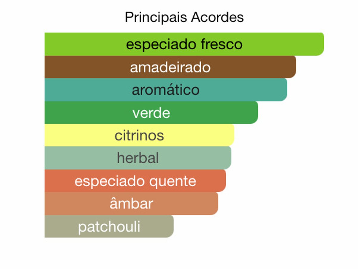 Base: Almíscar, Cipriol, Caxemira, Âmbar Cinzento, Baunilha Madeira Guaiac