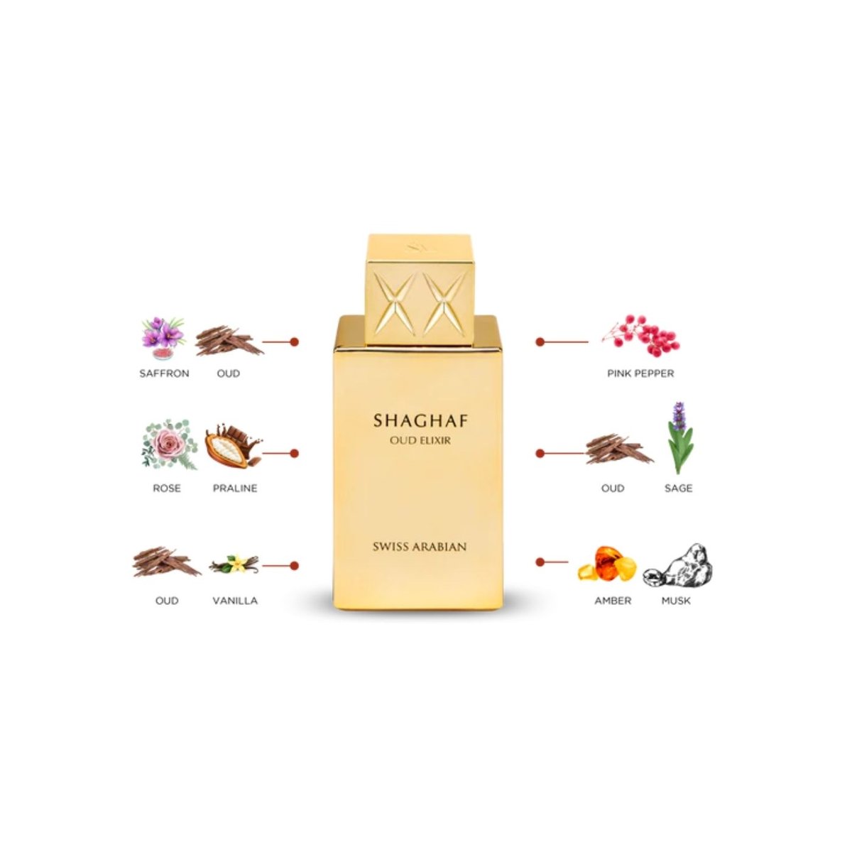 Intensidade oriental, luxo e exclusividade — Shaghaf Oud Elixir Limited Edition é uma interpretação ainda mais rica e sofisticada do clássico oud, onde o calor das especiarias encontra a cremosidade das madeiras e um toque adocicado sedutor.