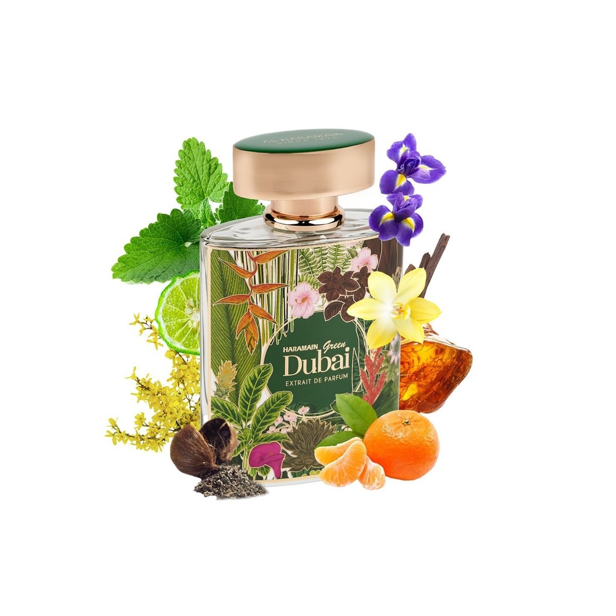 Descubra Haramain Green Dubai Eau de Parfum, uma fragrância inspirada na vibrante energia e nos recantos verdes de Dubai — cidade onde o futurismo abraça a natureza e cria magia.